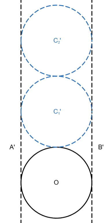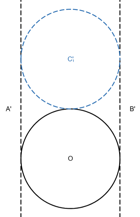 How about C₁? It’s tangent to O, A, and B, so C₁’ should be tangent to O, A’, and B’.