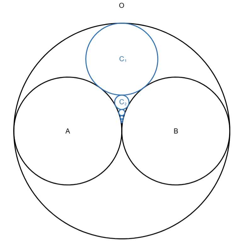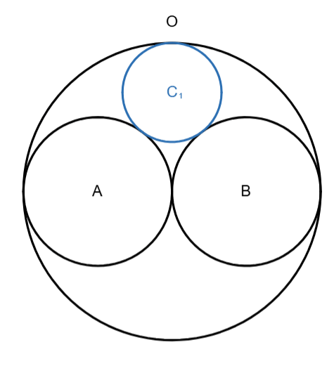 Now, C₁ is the circle that is internally tangent to O, but externally tangent to both A and B. There’s actually two of them, so I’ll just pick the top one.